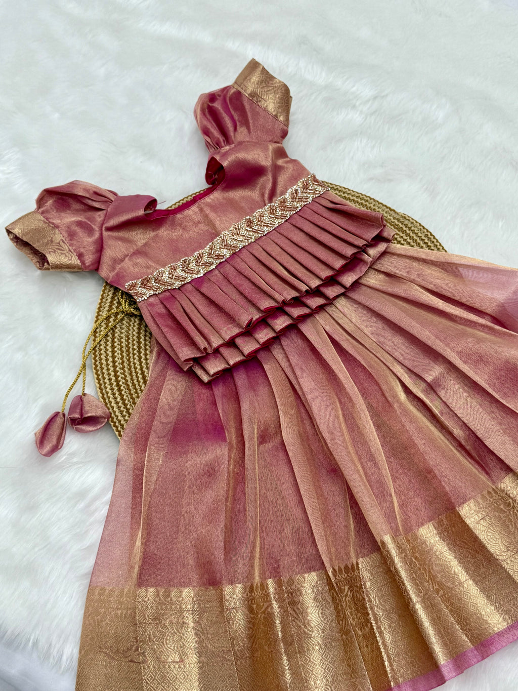• It’s Ready to Wear Girls Party Wear pattu pavadai Tissue silk Lehenga Choli.