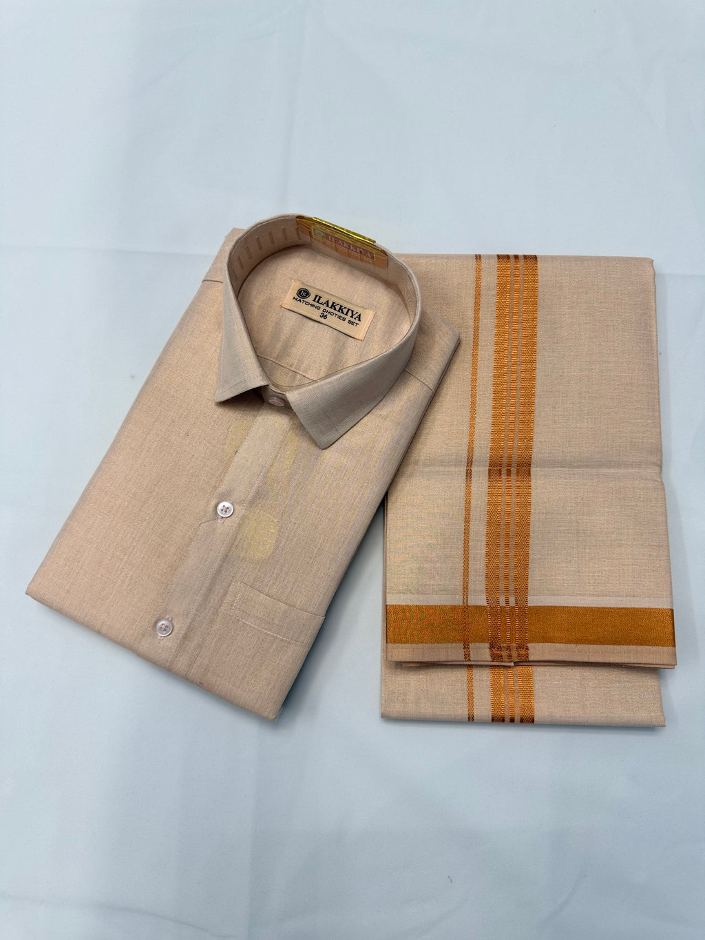 MEN'S PREMIUM TISSUE COPPER SINGLE DHOTI & SHIRT SET - CREAM