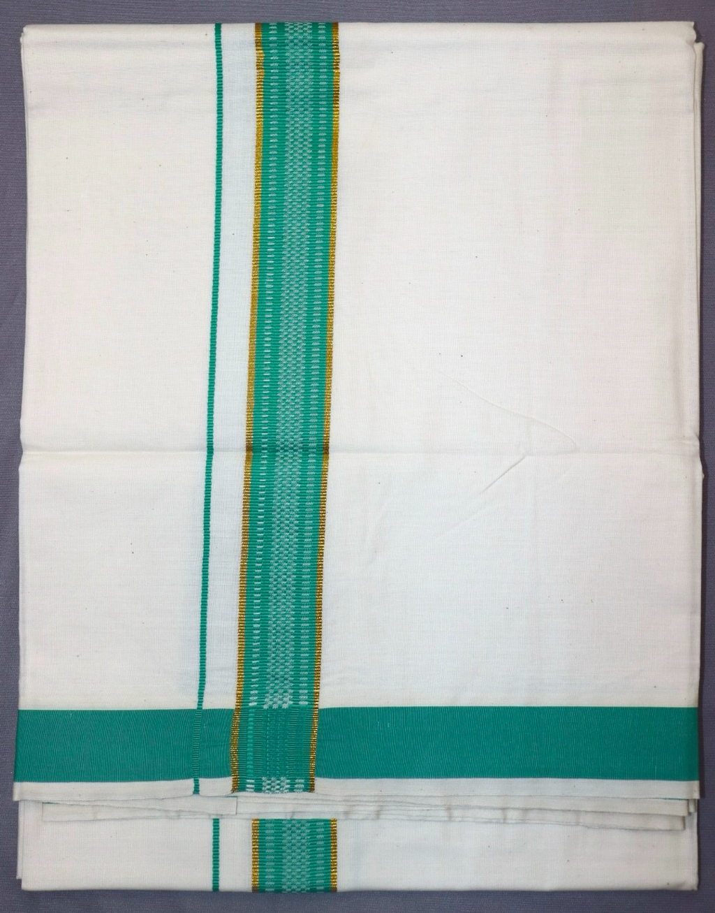 Men's Single Kerala Dhoti/Veshti/Mundu Cream With Fancy Border. Made of 100% pure cotton. Suitable for All Hip Size between 28-44. Shop south Indian traditional Dhoti dress online UK.