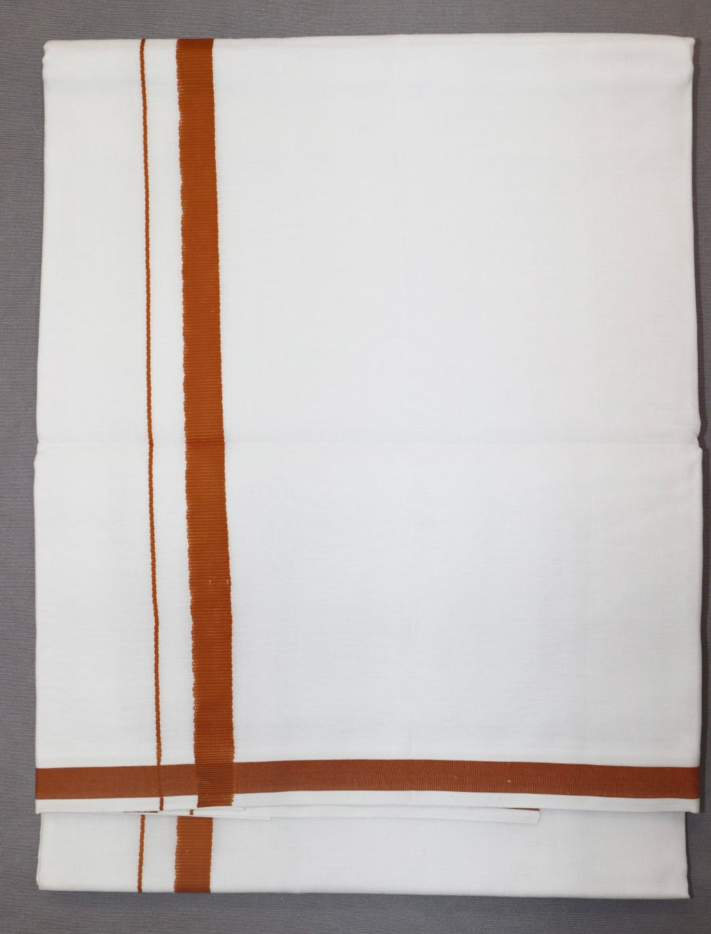 Men's Double Kerala Dhoti/Veshti/Mundu White With Fancy Border. Made of 100% pure cotton. Suitable for All Hip Size between 28-46.Shop south Indian traditional Dhoti dress online UK.