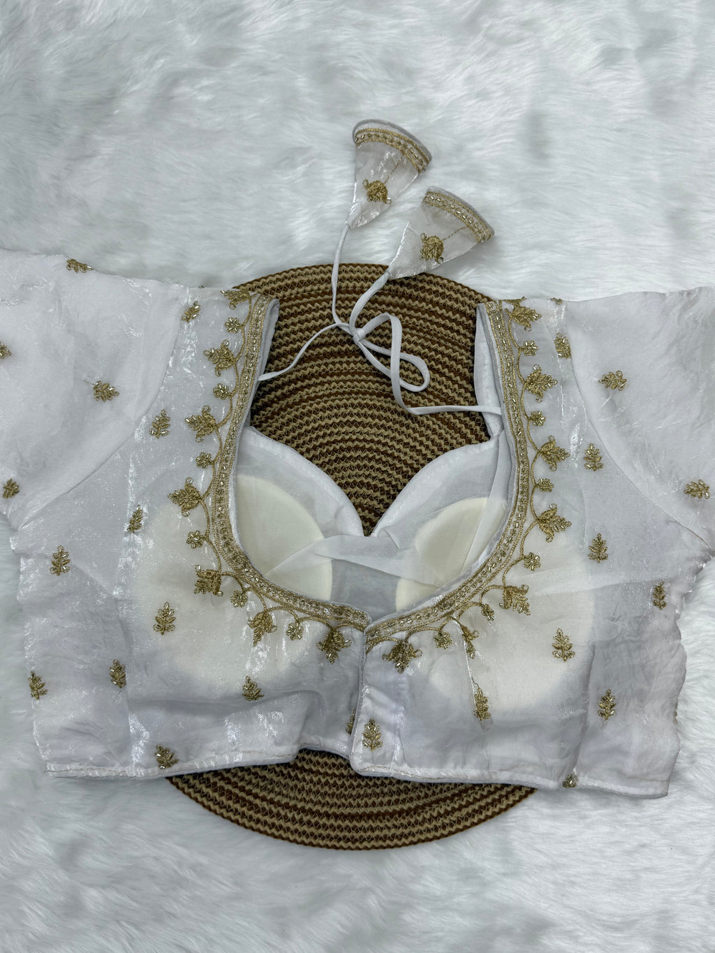 This is a readymade stitched ready to wear Aari Work Padded Organza blouse for any Occasions like Party Wear, Festival, Wedding, Ceremony.