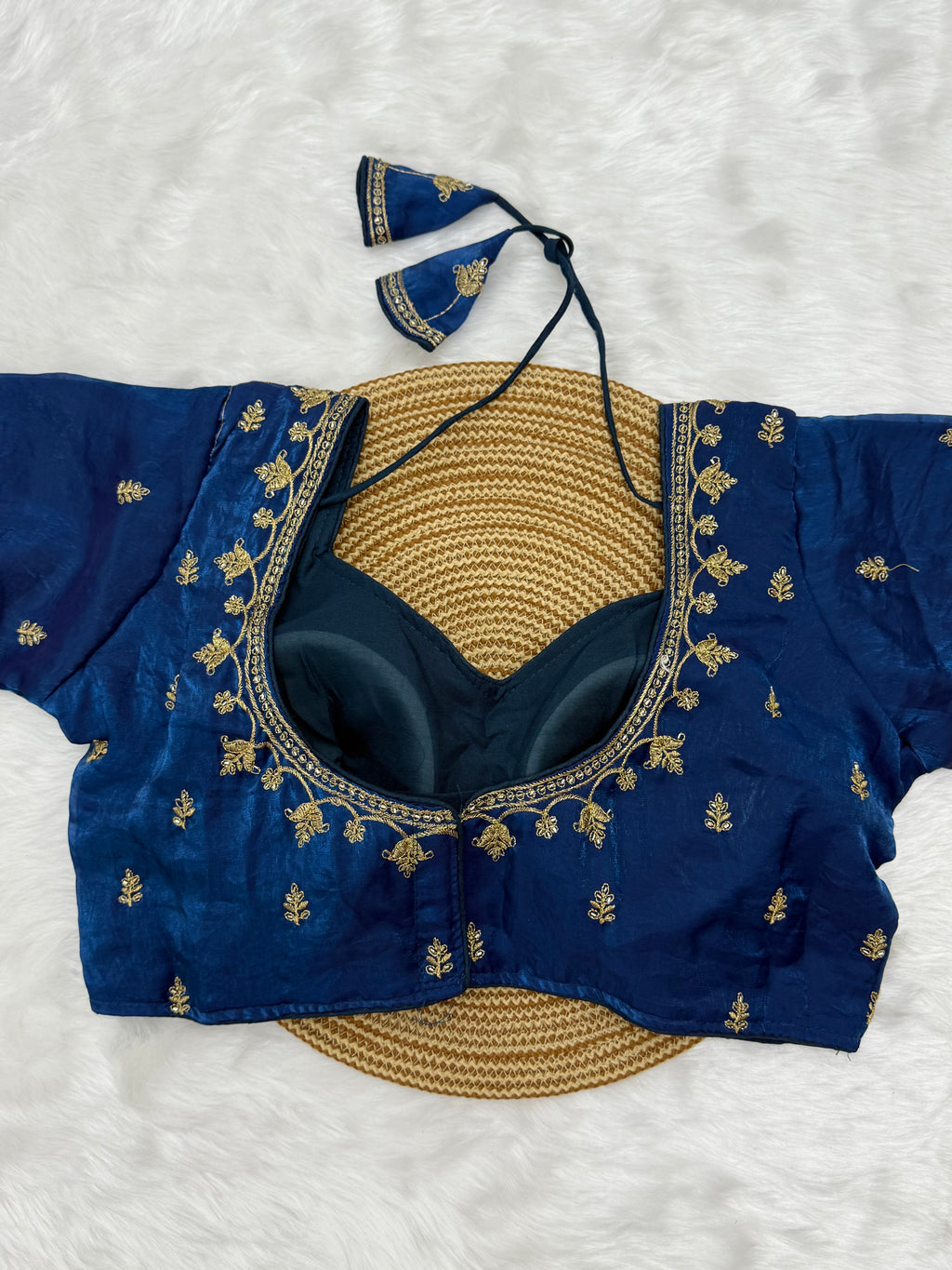 This is a readymade stitched ready to wear Aari Work Padded Organza blouse for any Occasions like Party Wear, Festival, Wedding, Ceremony.