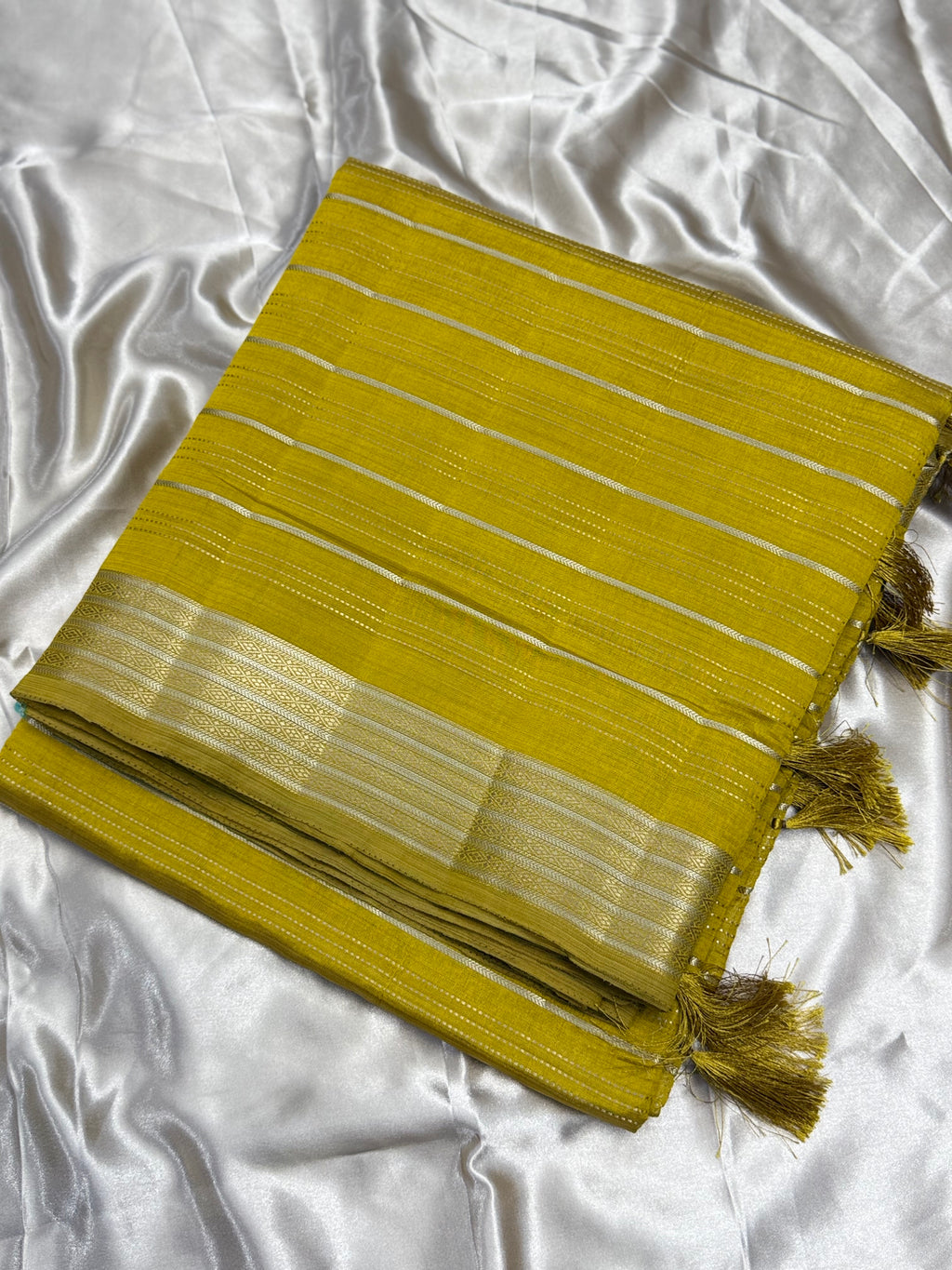TUSSAR SILK SAREE WITH ZARI BORDER - HONEY YELLOW