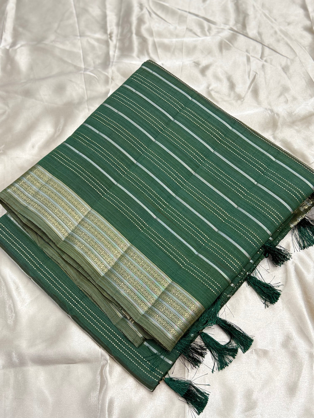• Design :This saree comes with woven zari border and body features horizontal zari lines and a striking checked pallu.
