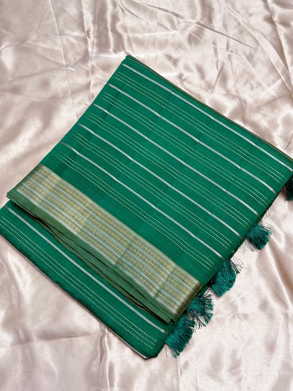 TUSSAR SILK SAREE WITH ZARI BORDER - JADE GREEN