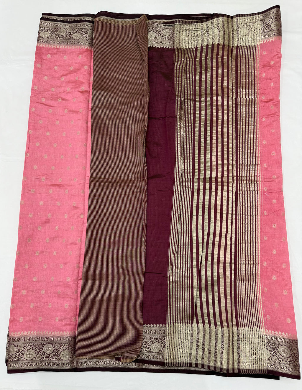 • Design :This saree comes with zari woven Floral border and body features Dotted butta and a vertical line zari woven pallu.