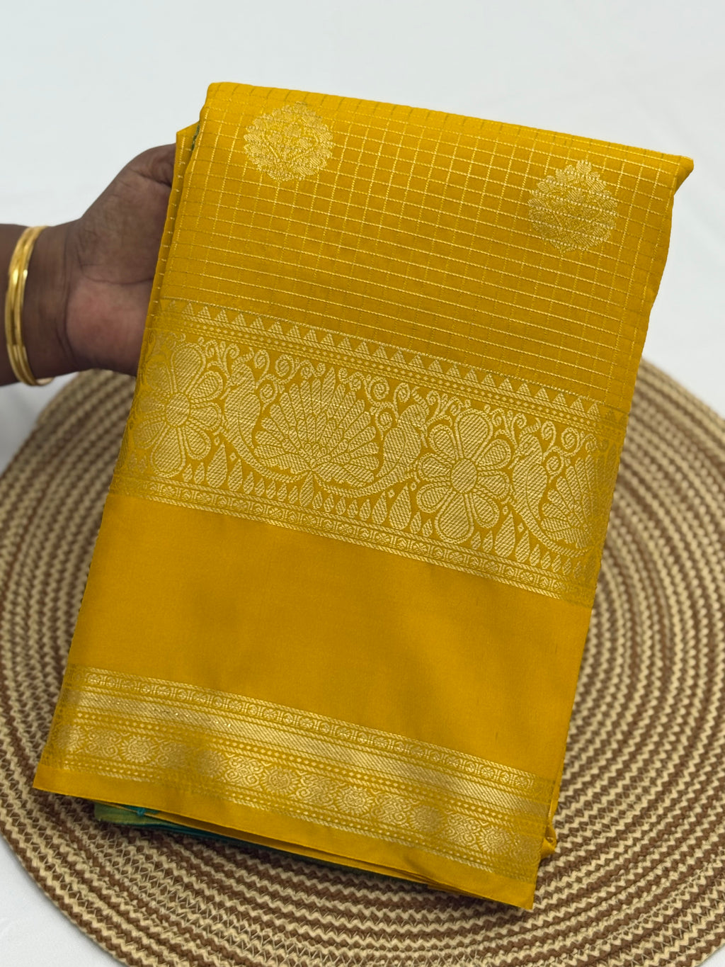 • Design : checked Zari Butta all over the Body With Unique Self Zari Border & Contrast Zari woven beautiful pallu