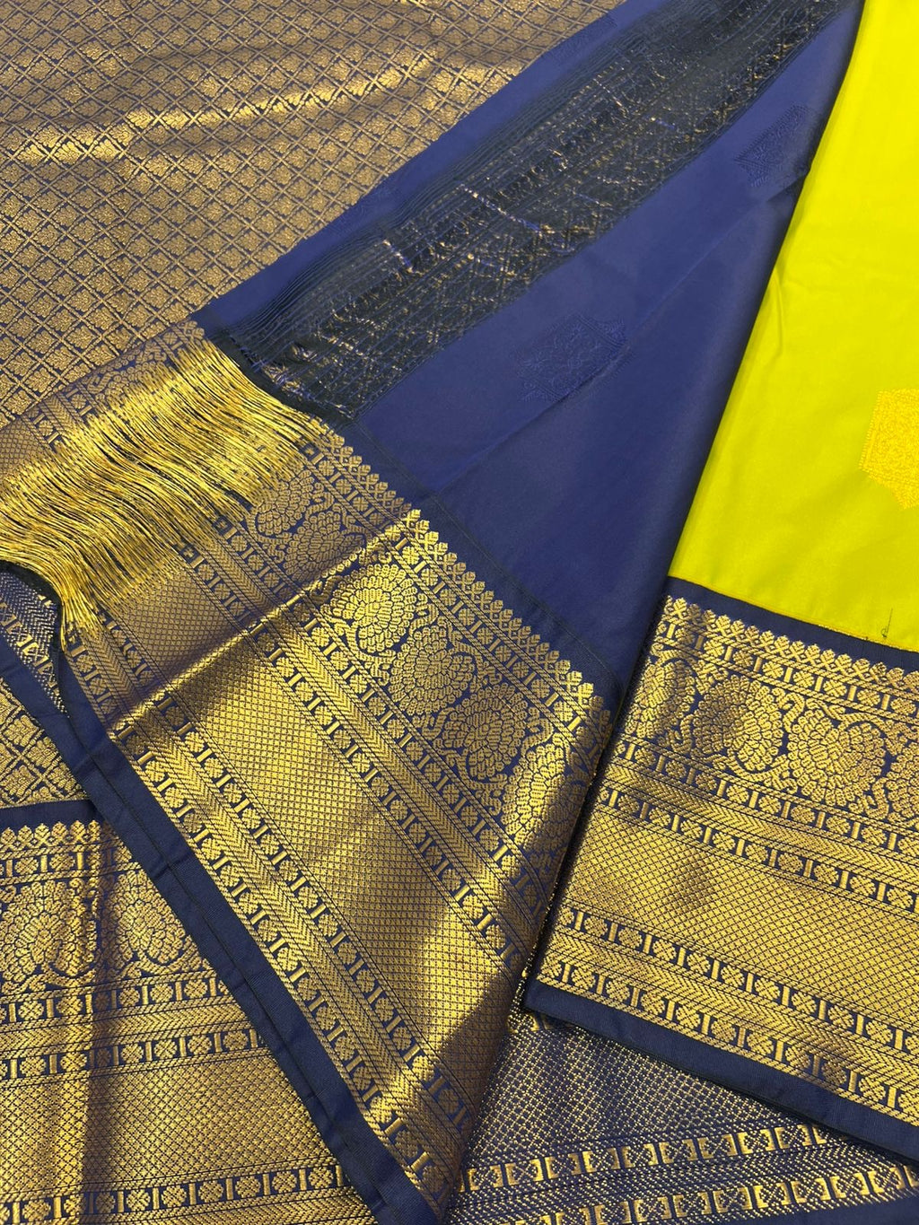 PREMIUM SEMI KANCHI SILK SAREE - YELLOW GREEN