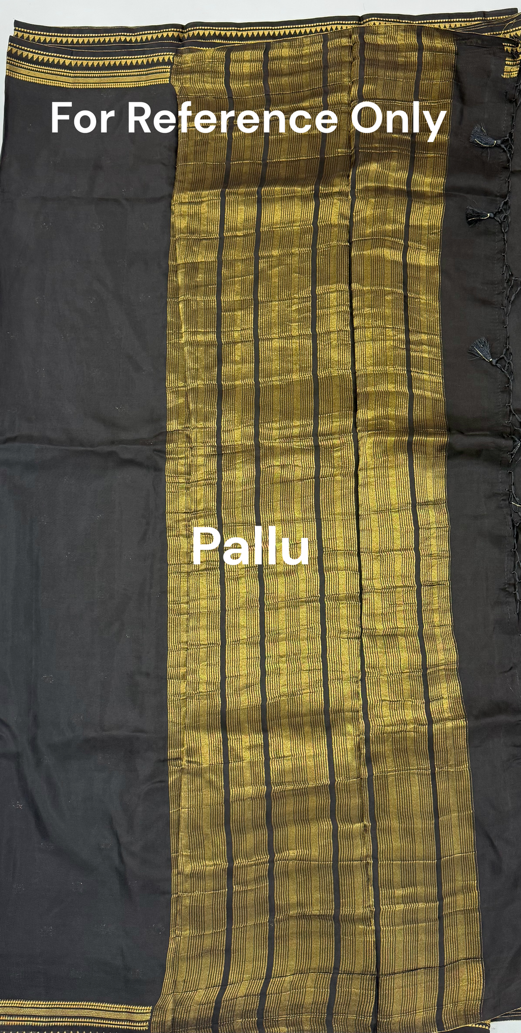 • Design : Plain Body With Unique golden zari woven Border & Self Golden Zari woven vertical striped pallu accomplished with tassels.