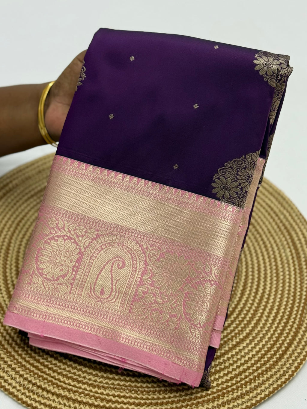PREMIUM SEMI KANCHI SILK SAREE - DEEP PURPLE