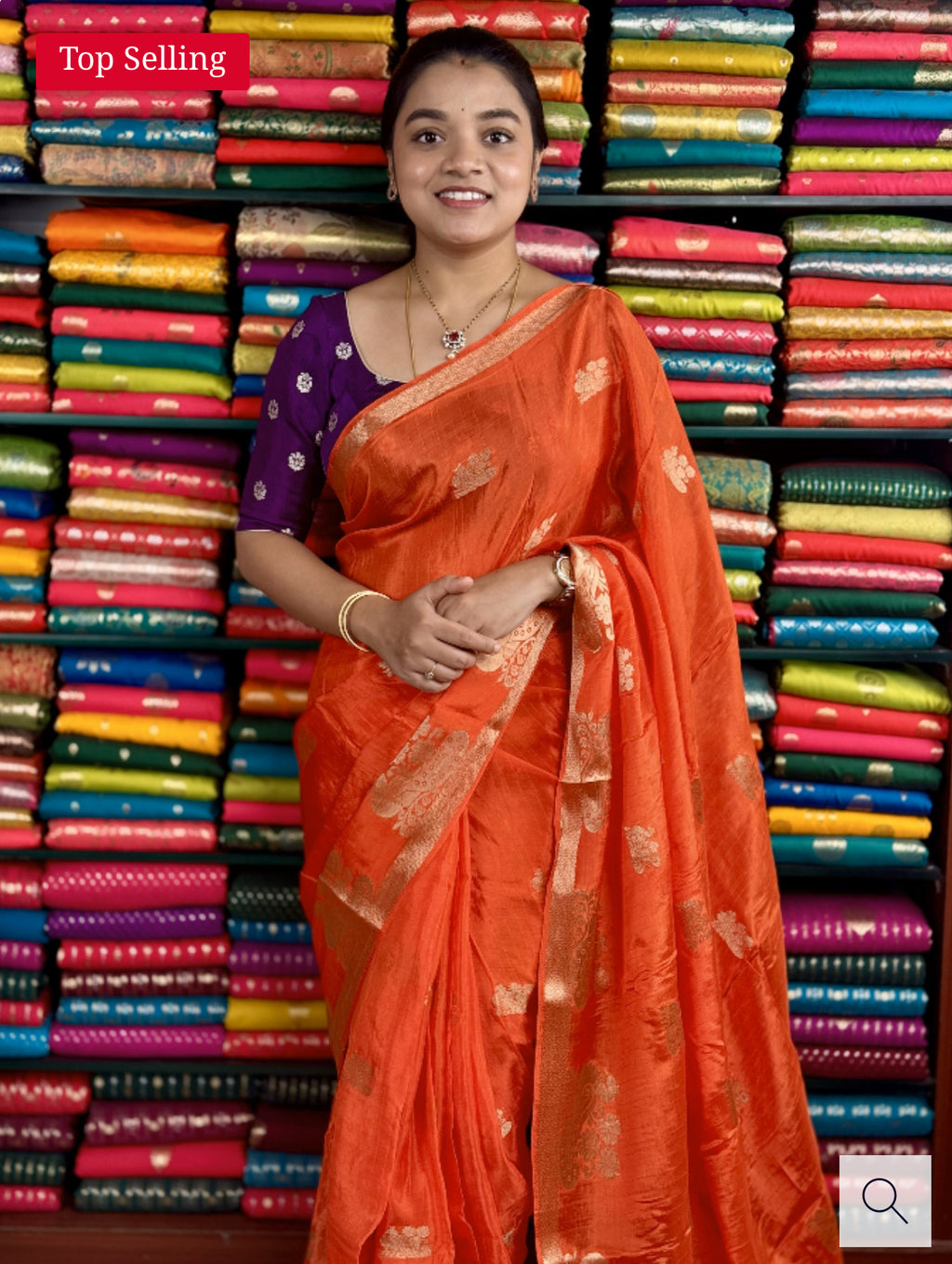 JUTE CREPE SILK PEACOCKBUTTA ORANGE AND PURPLE SAREE
