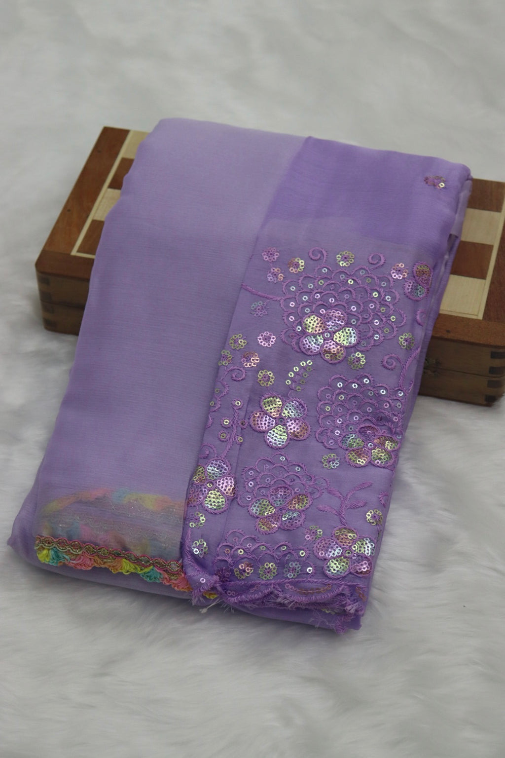 FANCY LACE BORDER CHIFFON SAREE - LAVENDER