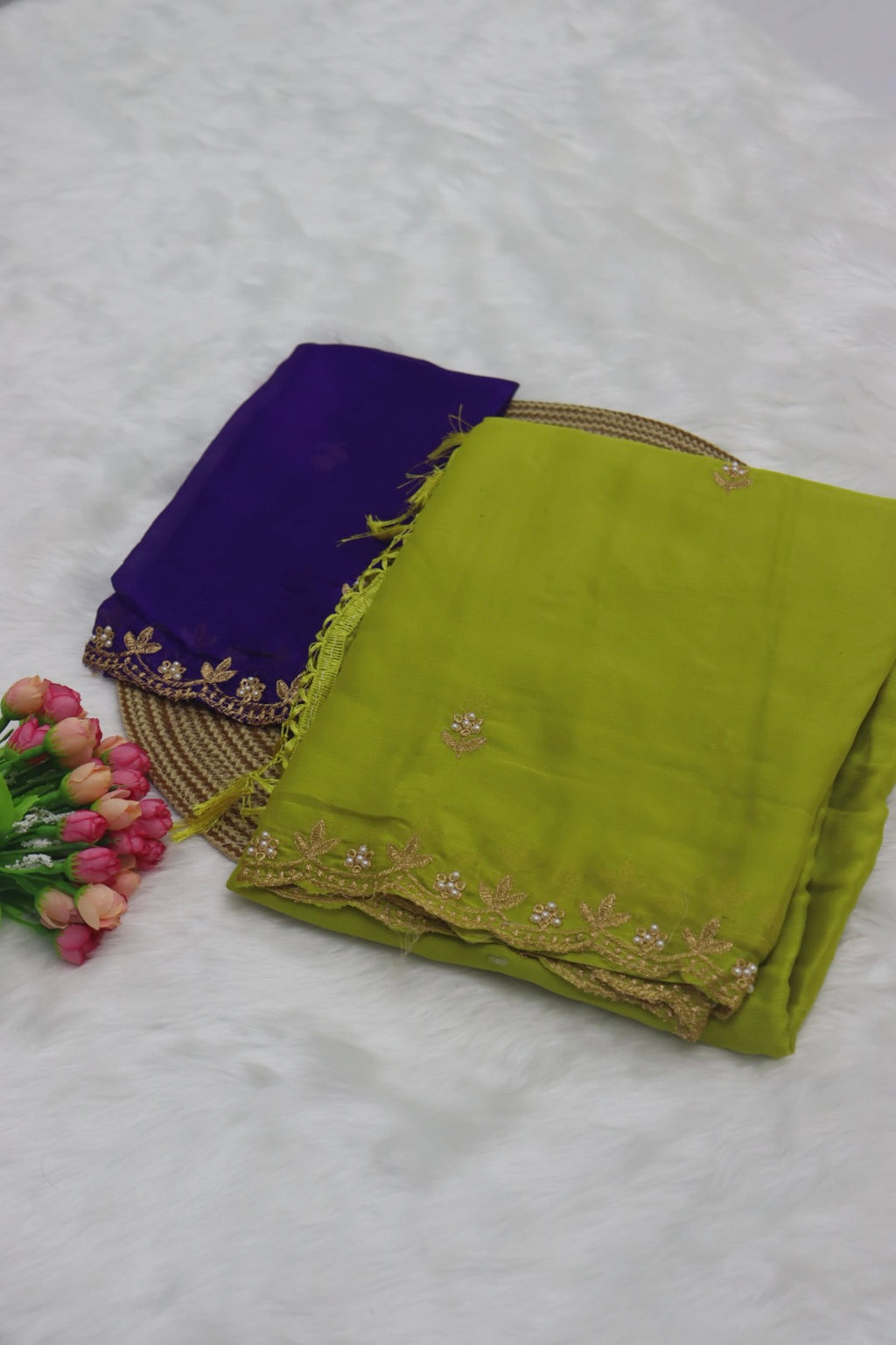 DESIGNER GEORGETTE SAREE WITH A BLOUSE PIECE - CHARTREUSE GREEN