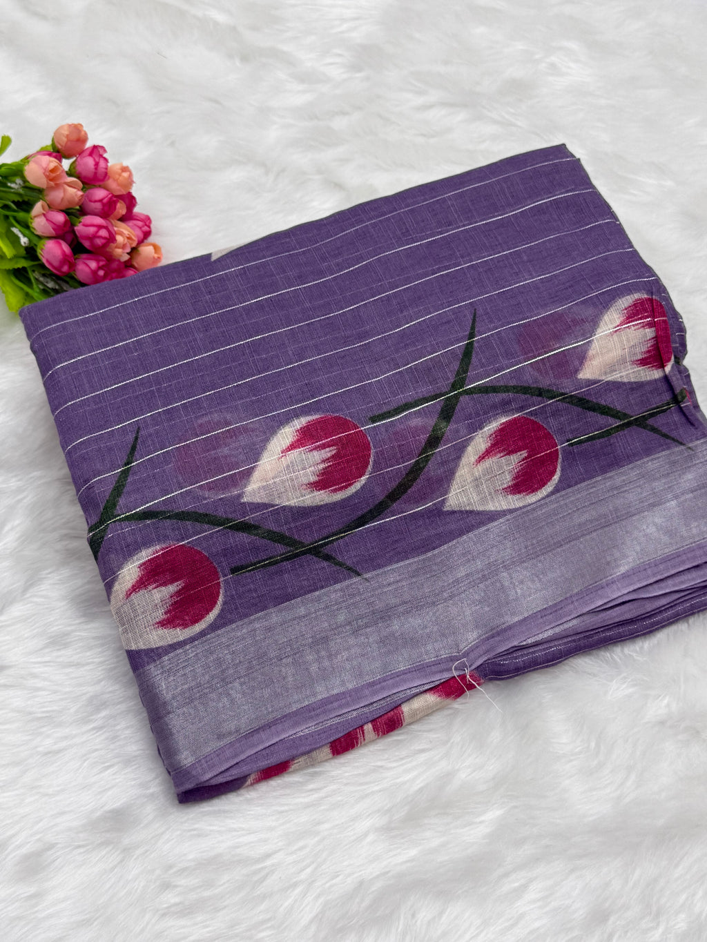 PREMIUM LINEN COTTON SILK SAREE - DARK LAVENDER