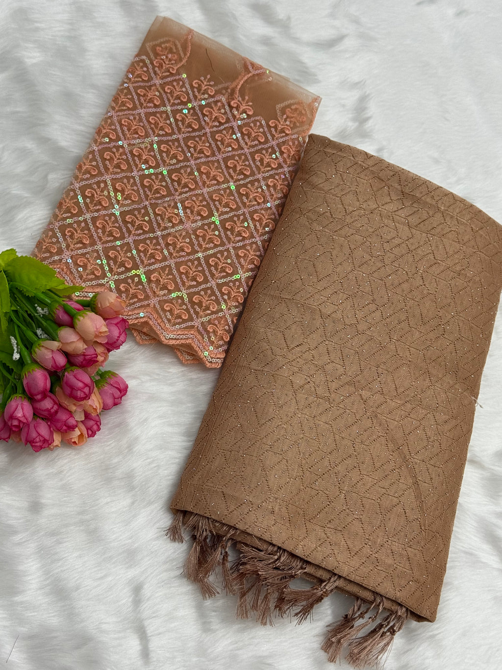 NETTED GEORGETTE SAREE WITH BLOUSE PIECE - MALIBU