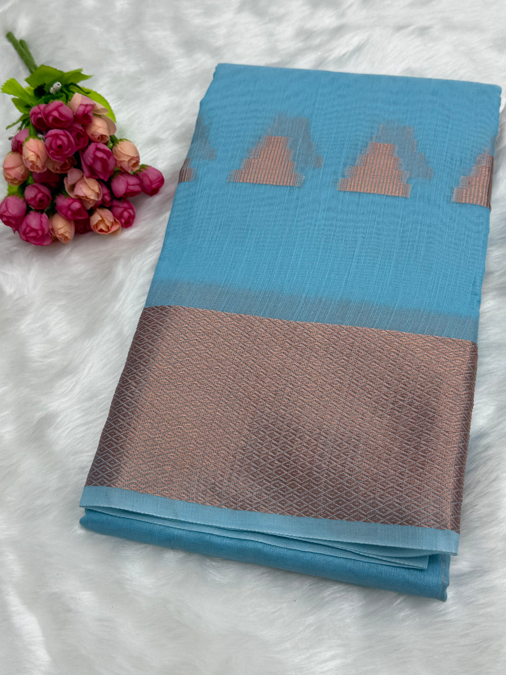 CHANDERI COTTON SILK SAREE - SKYBLUE