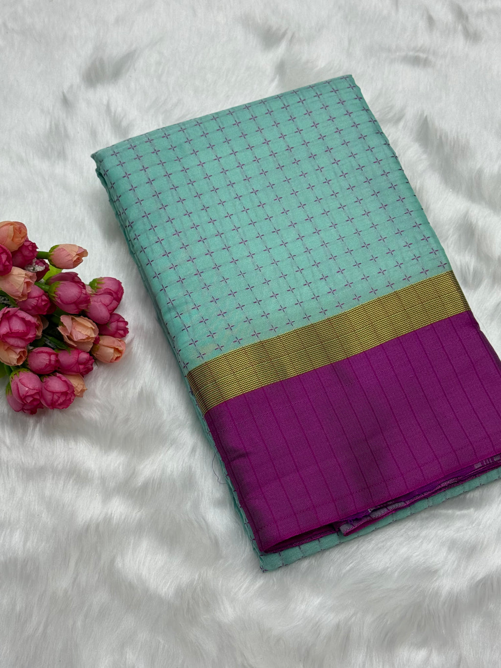 FANCY THREAD DOTED SOFT SILK SAREES - PISTACHIO