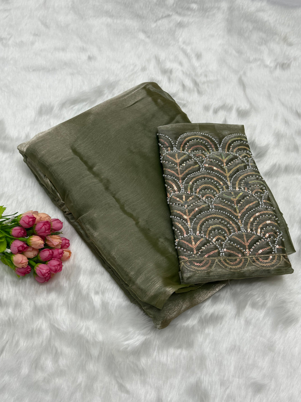 PREMIUM SPACE SILK SAREE WITH A MATCHING BLOUSE PIECE - LAUREL GREEN