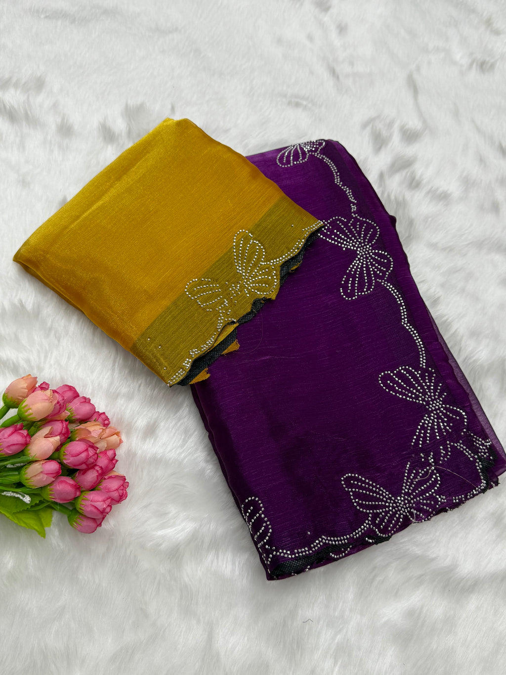 SPACE SILK BUTTERFLY DIAMOND WORK DESIGNER SAREE - PURPLE