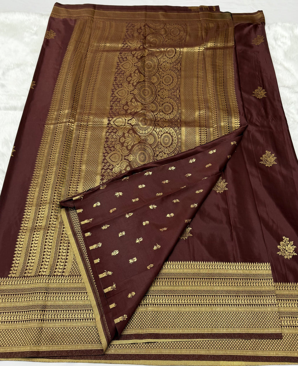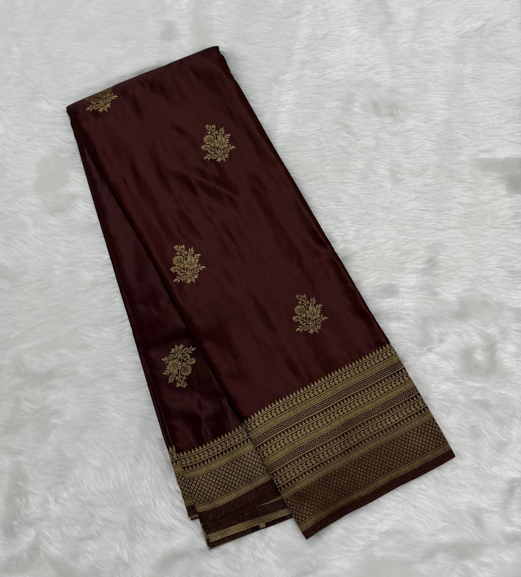 BEAUTIFUL PREMIUM SATIN SAREE - BROWN