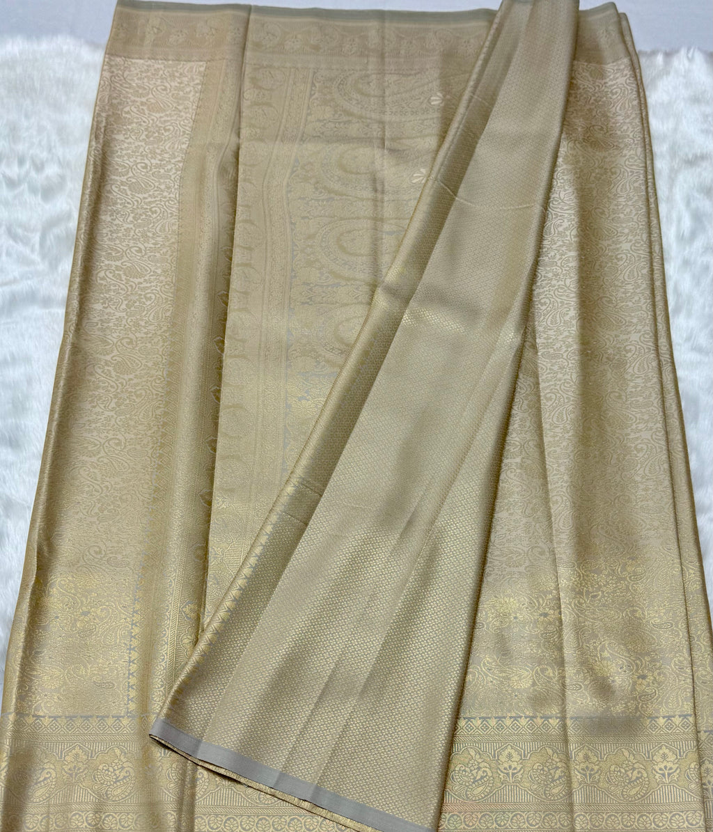 PREMIUM SEMI KANCHI SILK SAREE - GOLDEN CREAM