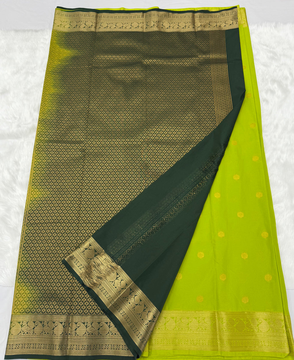 PREMIUM SEMI KANCHI SILK SAREE - YELLOW GREEN